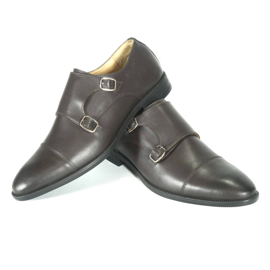 Dagga Men's Black / Brown Double Monk Leather Shoes